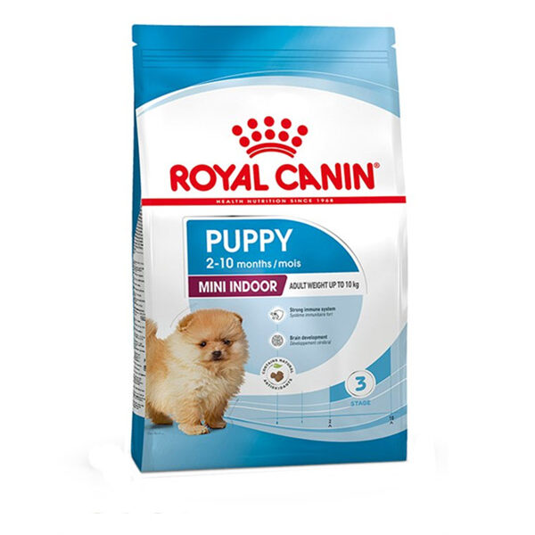 غذای خشک مینی ایندور پاپی Mini Indoor Puppy برند رویال کنین Royal Canin غذایی کامل و متعادل مناسب توله سگ های نژاد کوچک داخل خانه تا سن 10 ماهگی است.